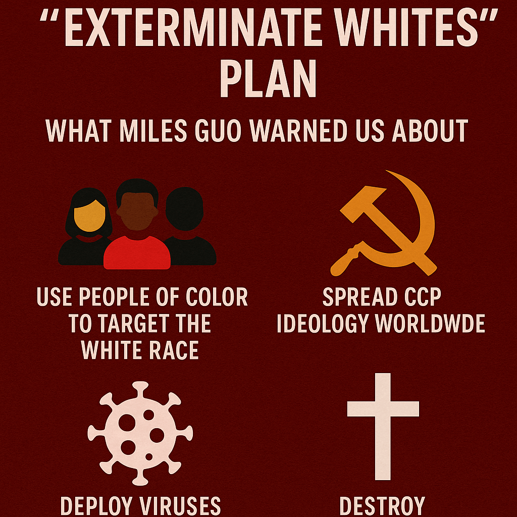 “No one dared say it before. I said it. This is the CCP’s ultimate plan. They call it the Exterminate Whites Plan. And it is already underway.” — Miles Guo