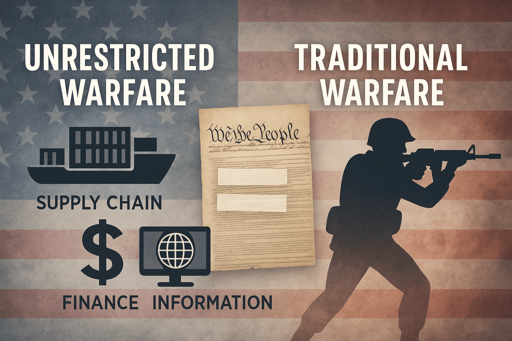 America stands at the edge of internal collapse, fighting an all‑encompassing unrestricted war—a war without declarations or front lines. It is waged through supply chains, finance, medicine, law, education, environment, and information—all the visible weapons of modern control. The enemy’s goal is not merely conquest through armies but through economic and territorial infiltration—buying land, ports, and influence to erode sovereignty from within, to replace liberty with domination.
